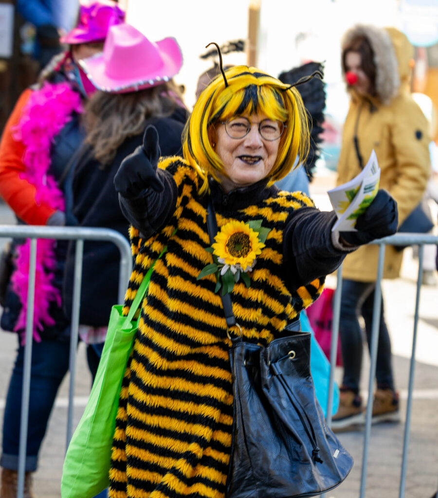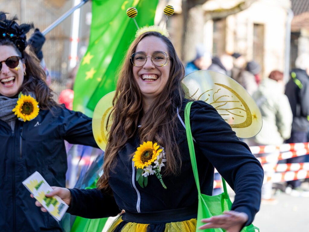 Mit „fleißigen Bienchen und Gärtner:innen“ nahmen die Grünen am Bayreuther Faschingsumzug teil – Oberbürgermeisterkandidatin Sa-”Bienchen” Steininger setzte ein Zeichen für Artenvielfalt und Zusammenhalt.