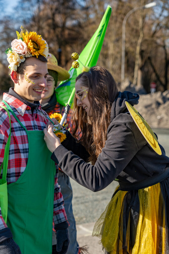 Die Kostümierung als Bienen und Gärtner:innen unterstrich dabei nicht nur den spielerischen Charakter des Faschings, sondern auch die politische Botschaft: „Städte können und müssen Lebensräume für Insekten schaffen. Jeder Quadratmeter zählt, ob auf Balkonen, in Gärten oder öffentlichen Grünflächen“, so Steininger weiter.