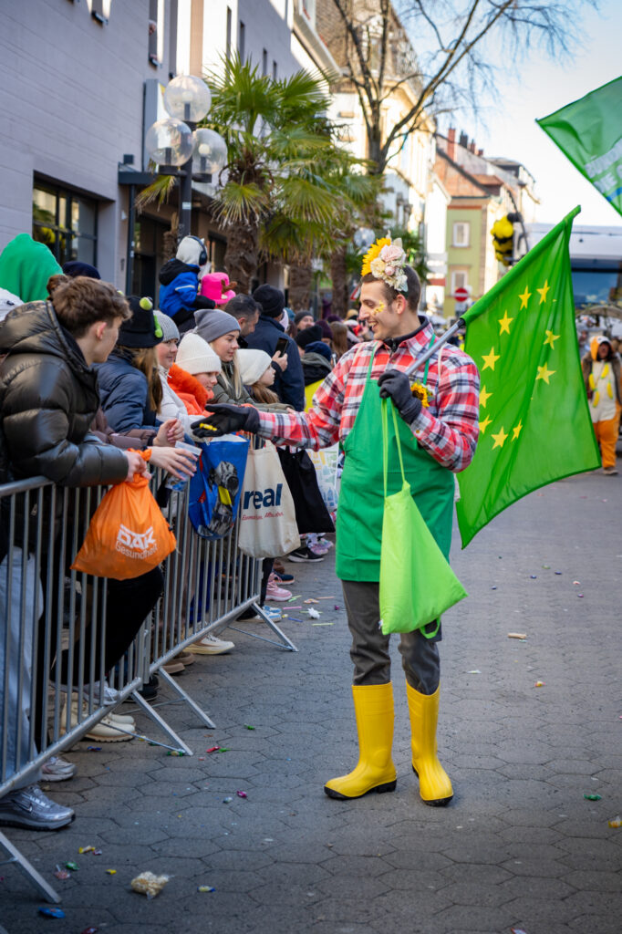 Thomas Pickel, Mitbegründer von Die Summer e.V. und Listenkandidat auf Platz 20, betont die Dringlichkeit des Themas: „Etwa 75 Prozent aller Tierarten sind Insekten. Sie sind Bestäuber, Recycler und Nahrungsgrundlage. Ohne sie würden unsere Ökosysteme nicht funktionieren. Auch in der Stadt können wir unseren Beitrag leisten – und genau dafür werben wir heute.“ Der Geoökologe setzt sich seit Jahren für die Förderung von Insekten-Lebensräumen in Bayreuth ein, legt Wildblumenwiesen an und erstellt insektenfreundliche Begrünungskonzepte. Die Grünen nutzten den Faschingsumzug bewusst als Plattform, um politische Inhalte auf unterhaltsame Weise zu transportieren, denn: Politik soll auch Spaß machen.
